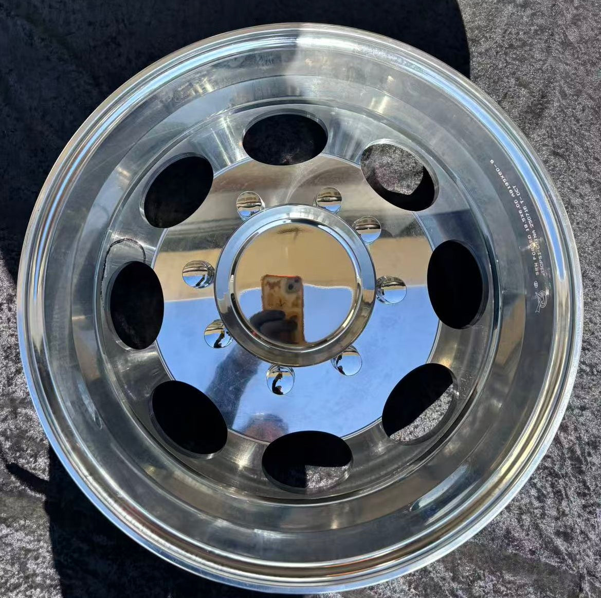 Package of 6pcs 19.5" x6 aluminum wheels extra Polished Dual Wheel 8 Oval design 4pcs aluminum wheels+2pcs steel wheels +4pcs covers